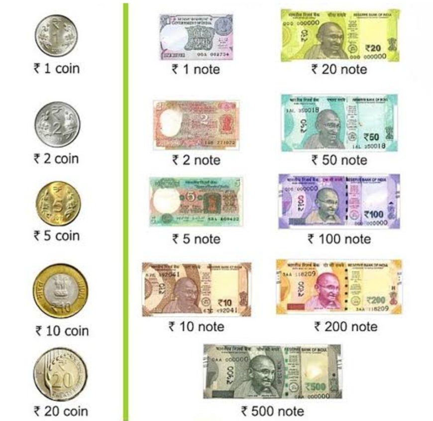 भारत में ₹10, ₹20, ₹50, ₹100, ₹200, ₹500 और ₹2000 के नोट प्रचलित हैं (हालांकि ₹2000 का उपयोग धीरे-धीरे कम हो रहा है)।